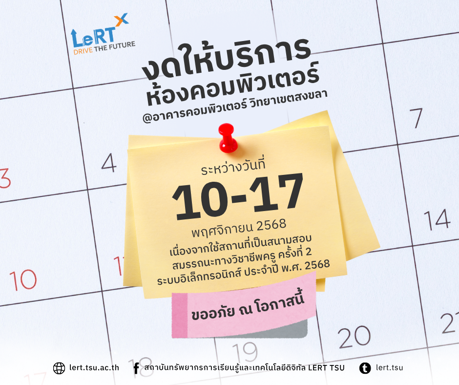 ประกาศงดให้บริการห้องคอมพิวเตอร์ ระหว่างวันที่ 10 – 17 พฤศจิกายน 2568