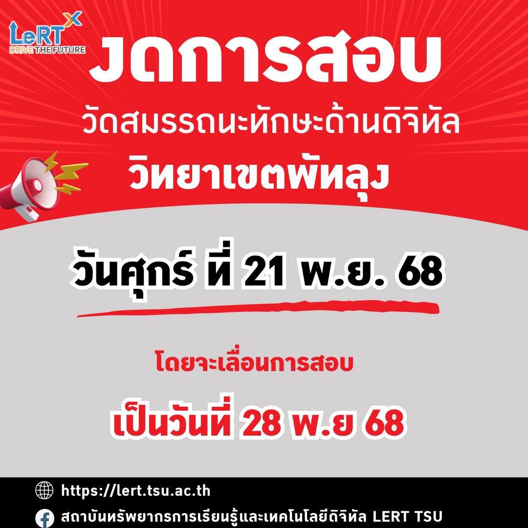 งด !! สอบวัดสมรรถนะทักษะด้านดิจิทัล รอบสอบวันที่ 21 พ.ย. 68