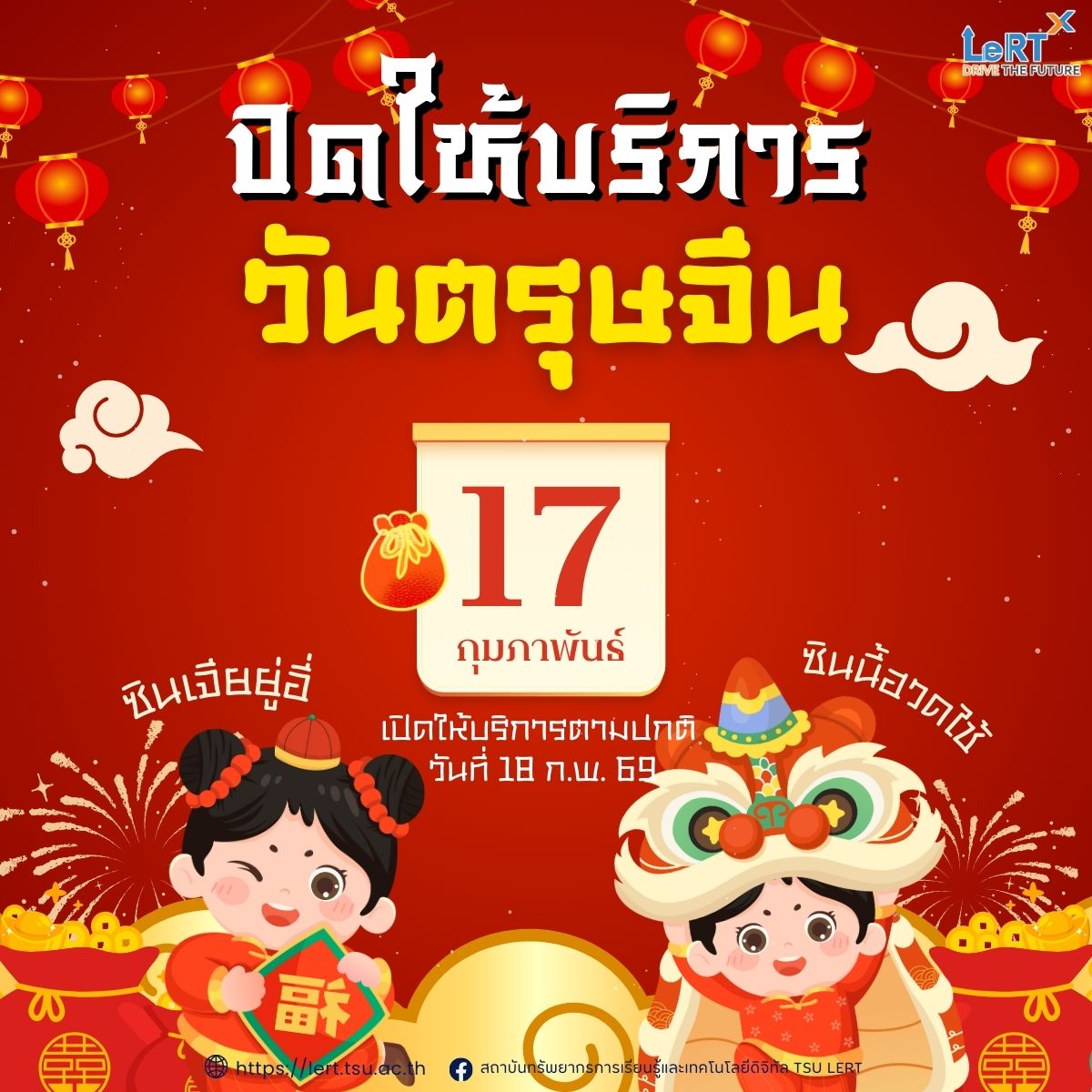 ปิดให้บริการเทศกาลตรุษจีน ในวันอังคารที่ 17 กุมภาพันธ์ 2569