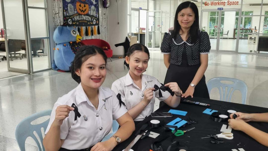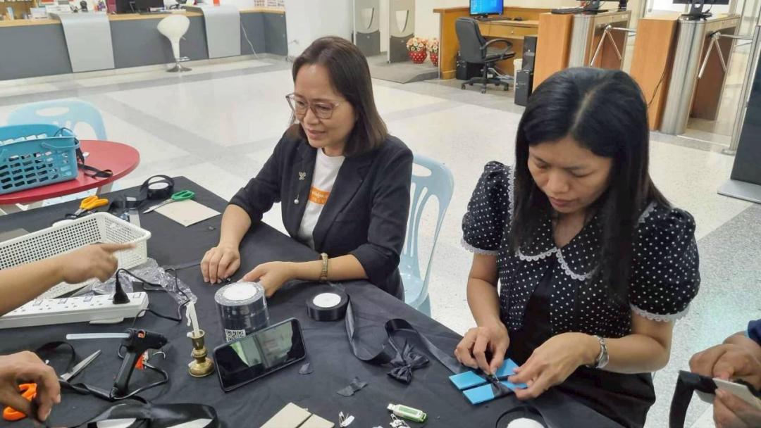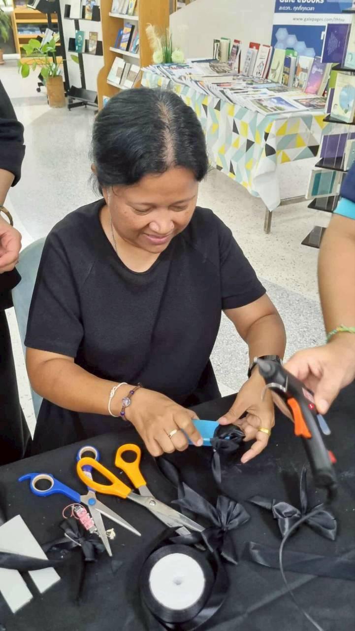 สถาบันทรัพยากรการเรียนรู้และเทคโนโลยีดิจิทัล มหาวิทยาลัยทักษิณ จัดกิจกรรมทำโบว์สีดำ น้อมรำลึกพระมหากรุณาธิคุณ