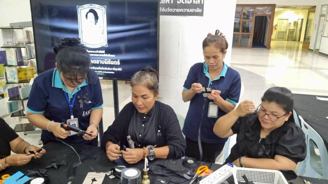 โดยเฉพาะอย่างยิ่ง งานประณีตศิลป์ ซึ่งโบว์สีดำที่ทุกคนร่วมกันทำนี้ ถือเป็นการน้อมนำคุณค่าของ การสร้างสรรค์ด้วยความวิริยะอุตสาหะ มาเป็นแรงบันดาลใจ เพื่อร่วมกันธำรงไว้ซึ่งความดีงามและความจงรักภักดีต่อสถาบันพระมหากษัตริย์