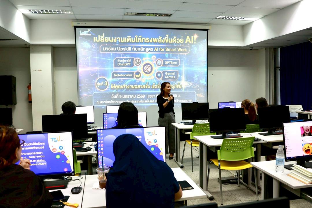 สถาบันทรัพยากรการเรียนรู้และเทคโนโลยีดิจิทัล จัดอบรมโครงการ “AI for Smart Work : ปรับงานเดิม เติมพลังใหม่ด้วย AI” ครั้งที่ 3 ณ ห้อง C207 สถาบันทรัพยากรการเรียนรู้และเทคโนโลยีดิจิทัล มหาวิทยาลัยทักษิณ วิทยาเขตสงขลา เพื่อพัฒนาความรู้และทักษะด้านการประยุกต์ใช้เทคโนโลยีปัญญาประดิษฐ์ในการทำงานของบุคลากรมหาวิทยาลัย