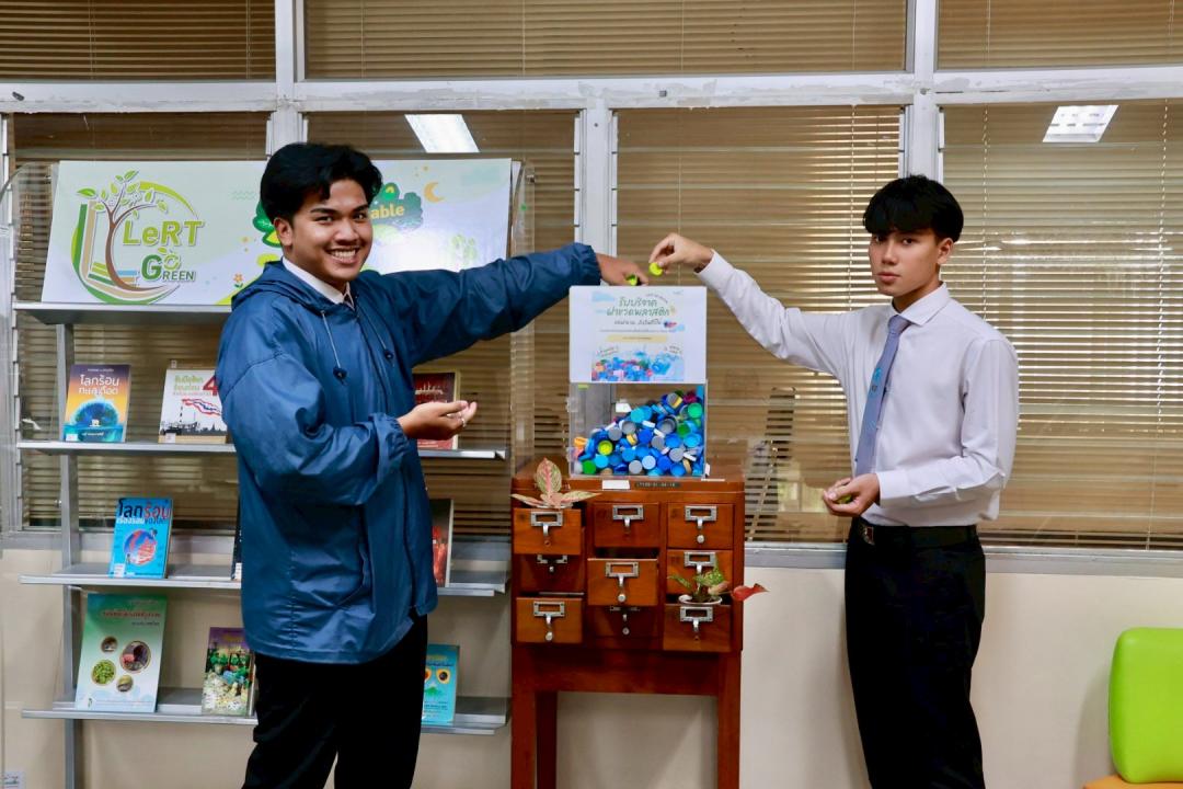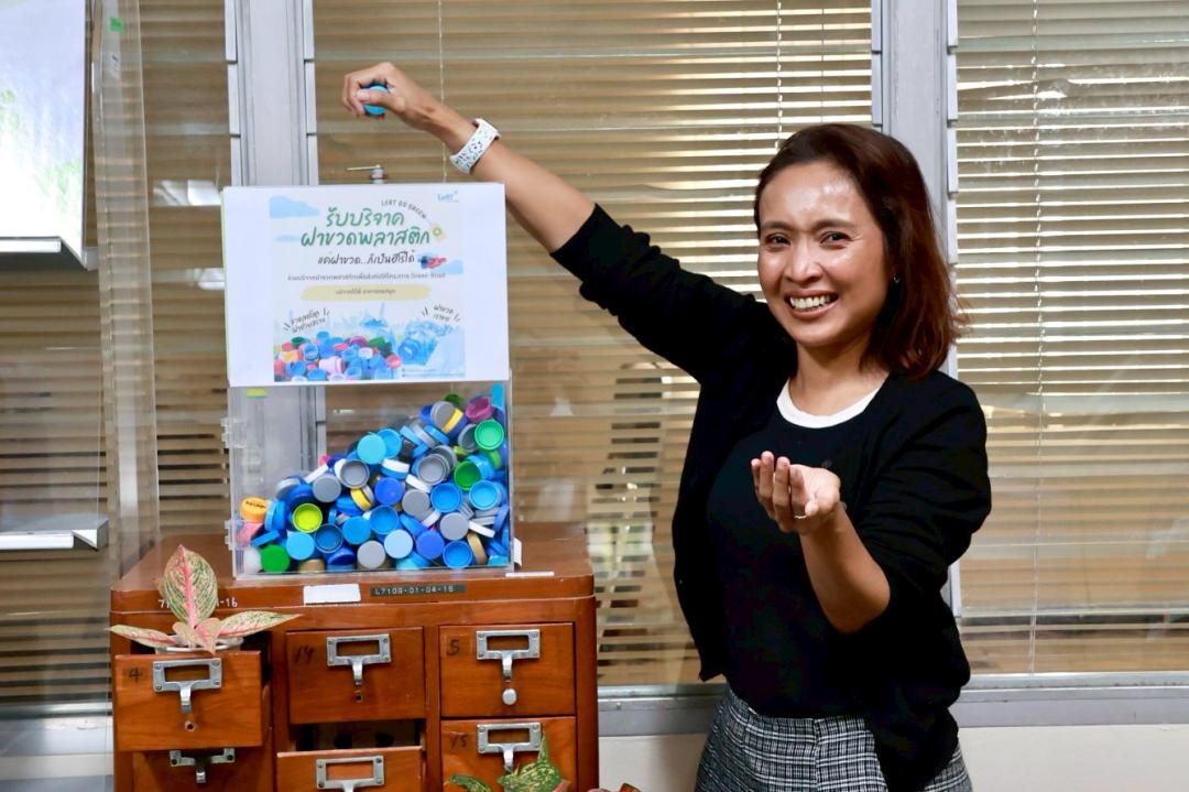 นอกจากนี้ ยังมีการ ส่งมอบฝาขวดพลาสติก ที่ได้รับบริจาคจากผู้มาใช้บริการห้องสมุด เพื่อนำไปรวบรวมและส่งต่อให้โครงการ Green Road สำหรับการแปรรูปและนำกลับมาใช้ประโยชน์ ลดปริมาณขยะพลาสติกอย่างเป็นรูปธรรม ควบคู่กับการรณรงค์ให้ผู้ใช้บริการ พกแก้วส่วนตัว เพื่อกดน้ำดื่มจากจุดบริการบริเวณชั้น 1 อาคารหอสมุด เป็นการลดการใช้พลาสติกแบบใช้ครั้งเดียวและส่งเสริมพฤติกรรมรักษ์สิ่งแวดล้อมในชีวิตประจำวัน