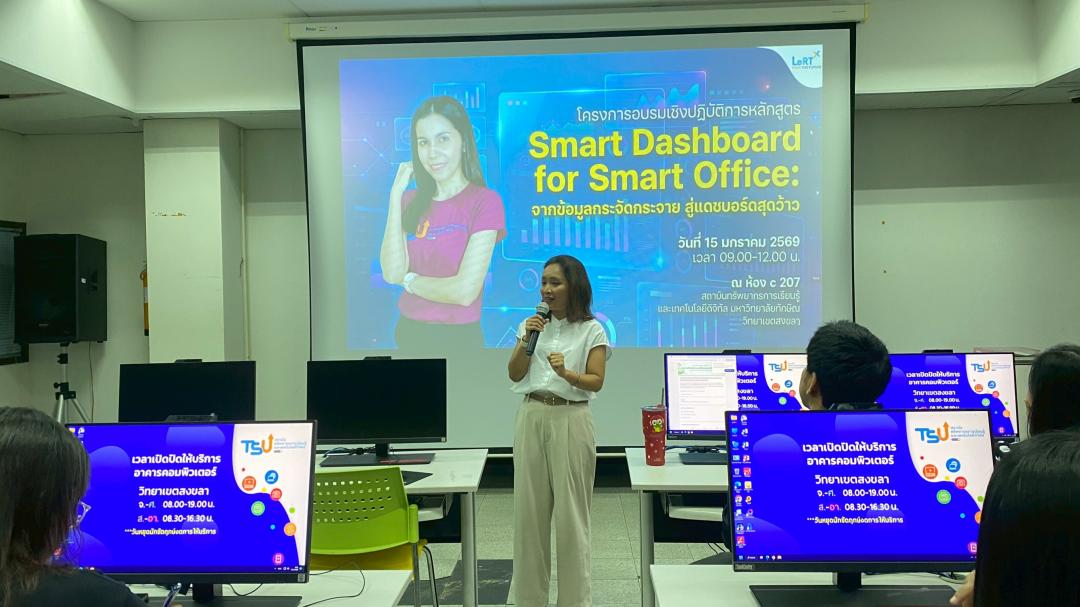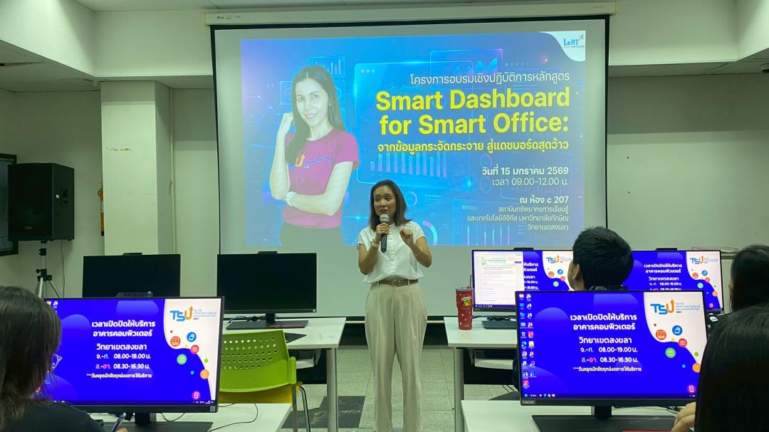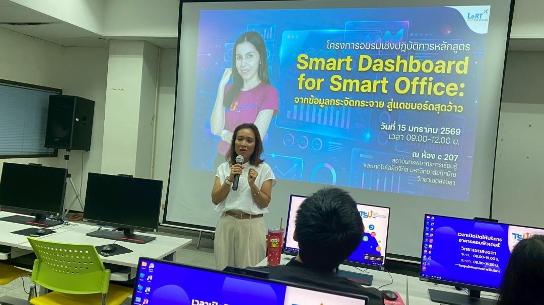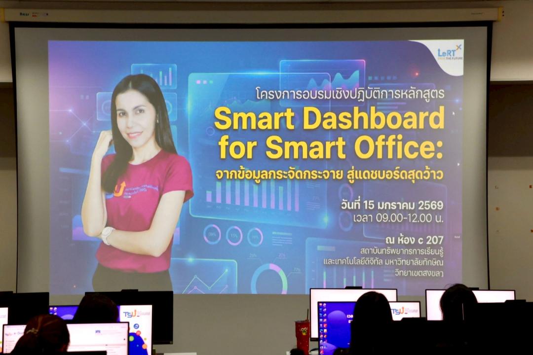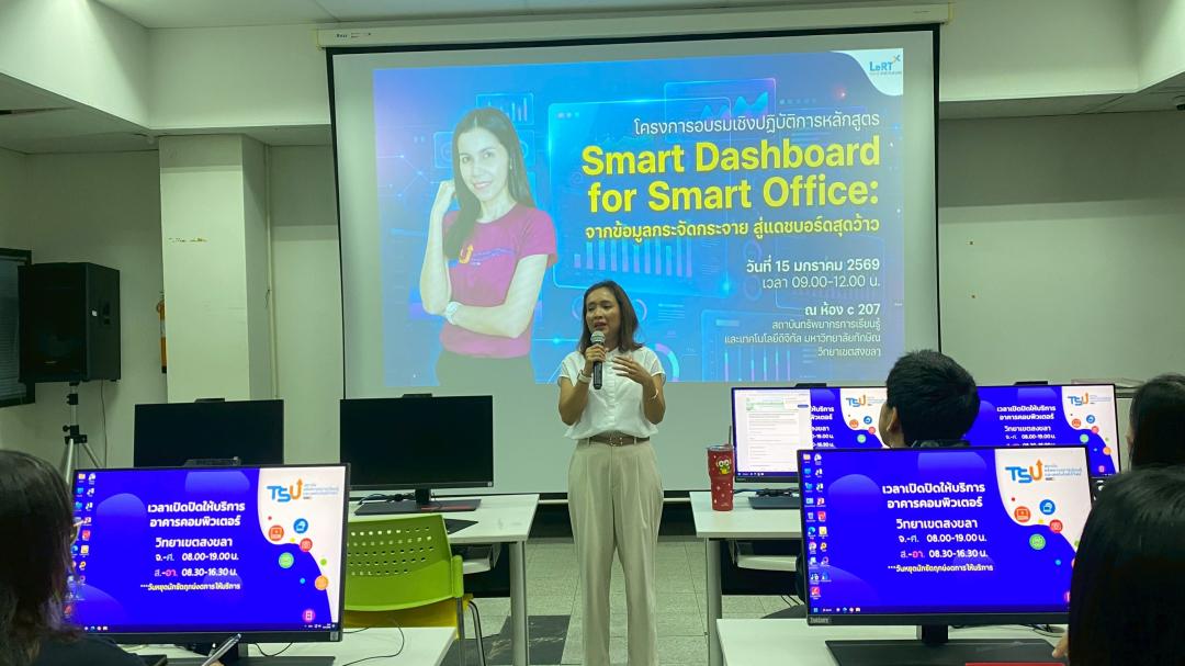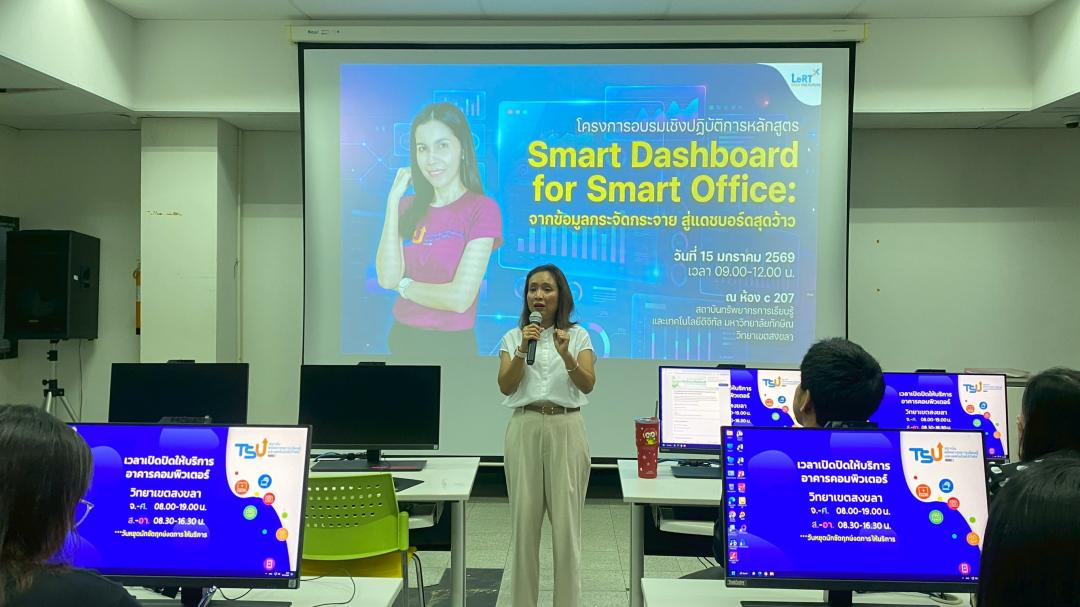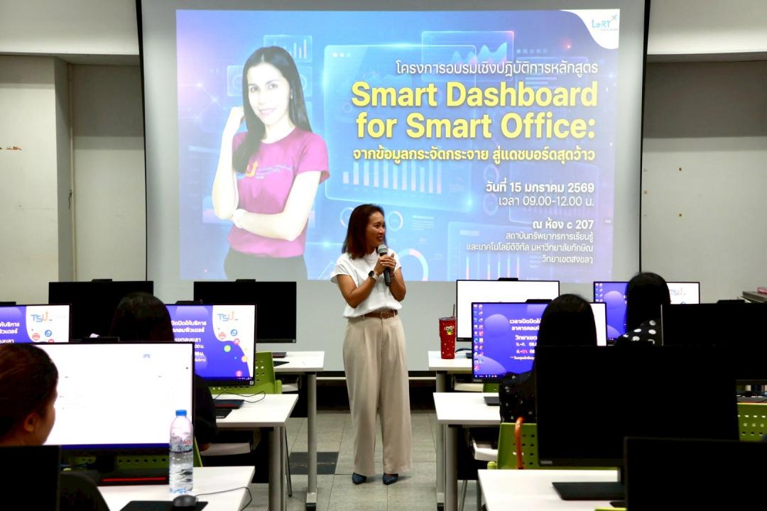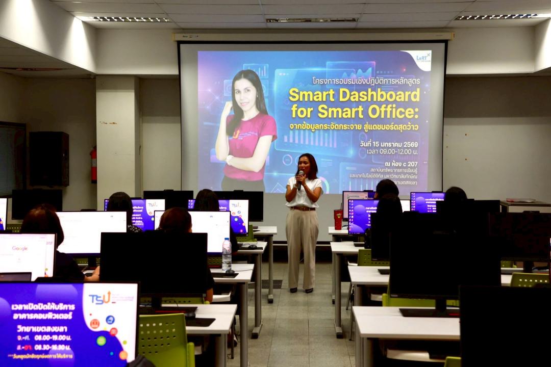 สถาบันทรัพยากรการเรียนรู้และเทคโนโลยีดิจิทัล จัดโครงการอบรมเชิงปฏิบัติการ หลักสูตร “Smart Dashboard for Smart Office: จากข้อมูลกระจัดกระจาย สู่แดชบอร์ดสุดว้าว” เพื่อส่งเสริมการเรียนรู้และการประยุกต์ใช้เทคโนโลยีใหม่ ๆ ในการพัฒนางานให้มีประสิทธิภาพมากยิ่งขึ้น โดยจัดอบรมในวันพฤหัสบดีที่ 15 มกราคม 2569 เวลา 09.00–12.00 น. ณ ห้อง C207 อาคารคอมพิวเตอร์ สถาบันทรัพยากรการเรียนรู้และเทคโนโลยีดิจิทัล วิทยาเขตสงขลา