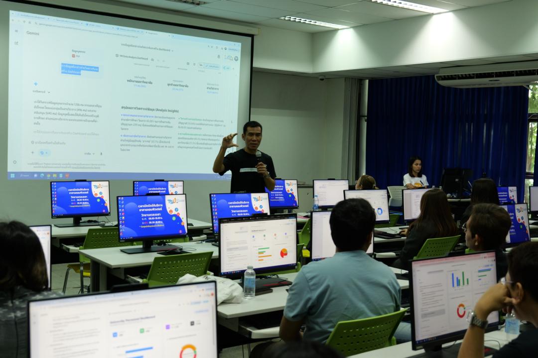 การอบรมครั้งนี้มุ่งเน้นการทำความเข้าใจบทบาทของ AI ในการทำงานจริง โดยผู้เข้าร่วมจะได้เรียนรู้แนวคิดและตัวอย่างการนำ AI มาช่วยสนับสนุนงานประจำในหลากหลายด้าน อาทิ การจัดการข้อมูล การจัดทำเอกสาร การวิเคราะห์ข้อมูลเบื้องต้น และการเพิ่มความคล่องตัวให้กระบวนการทำงาน ช่วยลดภาระงานซ้ำซ้อน และเพิ่มประสิทธิภาพการทำงานของบุคลากรอย่างเป็นรูปธรรม