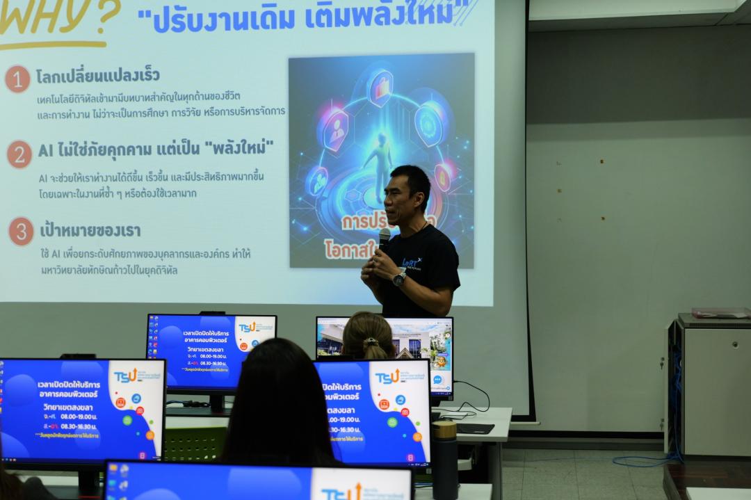 สถาบันทรัพยากรการเรียนรู้และเทคโนโลยีดิจิทัล ยังคงเดินหน้าจัดกิจกรรมอบรมด้าน AI และเทคโนโลยีดิจิทัลอย่างต่อเนื่อง เพื่อพัฒนาทักษะบุคลากรมหาวิทยาลัยทักษิณให้ครอบคลุมและสอดรับกับบทบาทการทำงานที่เปลี่ยนแปลงไป พร้อมเสริมสร้างความพร้อมในการนำเทคโนโลยีมาประยุกต์ใช้ในการปฏิบัติงานได้อย่างเหมาะสมและเกิดประโยชน์สูงสุด
