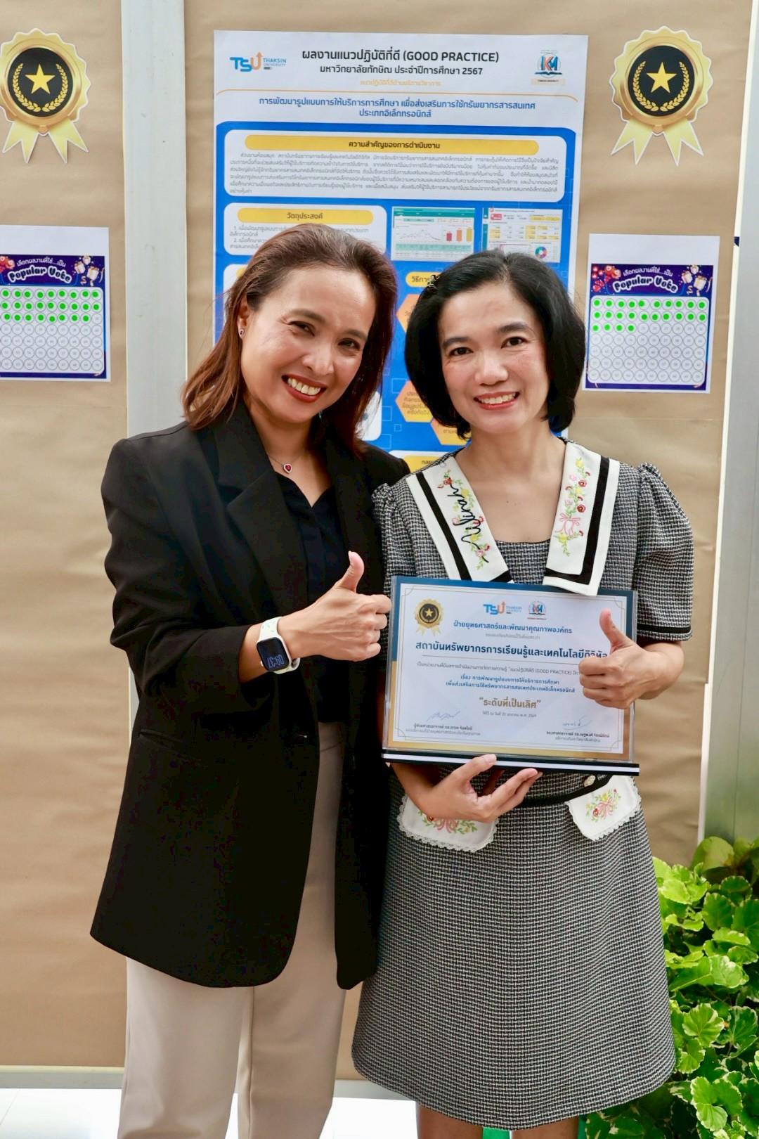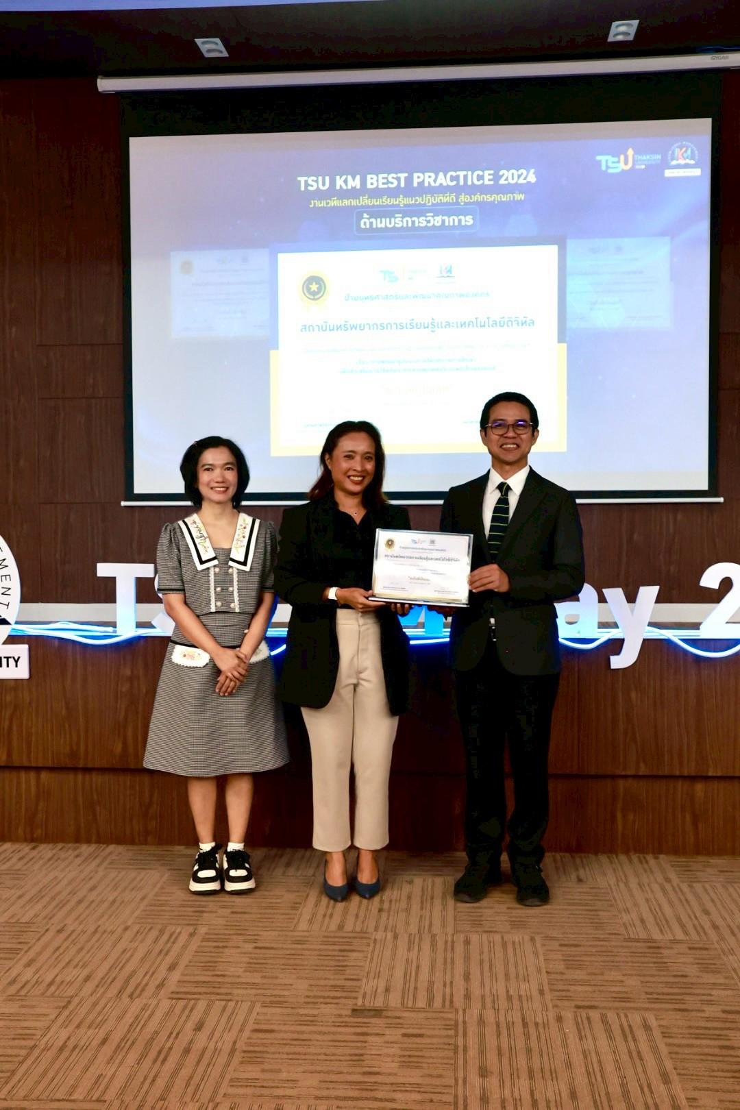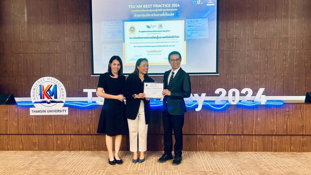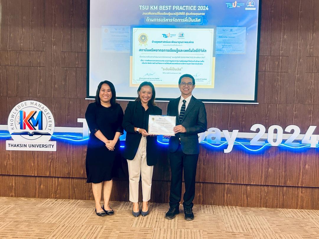 โอกาสนี้ สถาบันทรัพยากรการเรียนรู้และเทคโนโลยีดิจิทัล (LeRT) ได้รับรางวัล Good Practice มหาวิทยาลัยทักษิณ ปีการศึกษา 2567 จำนวน 3 ผลงาน ครอบคลุมทั้งด้านบริการวิชาการและด้านการบริหารจัดการ ระดับคุณภาพที่เป็นเลิศ ได้แก่