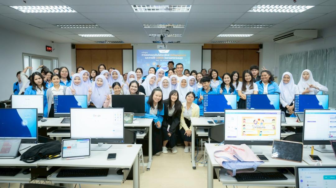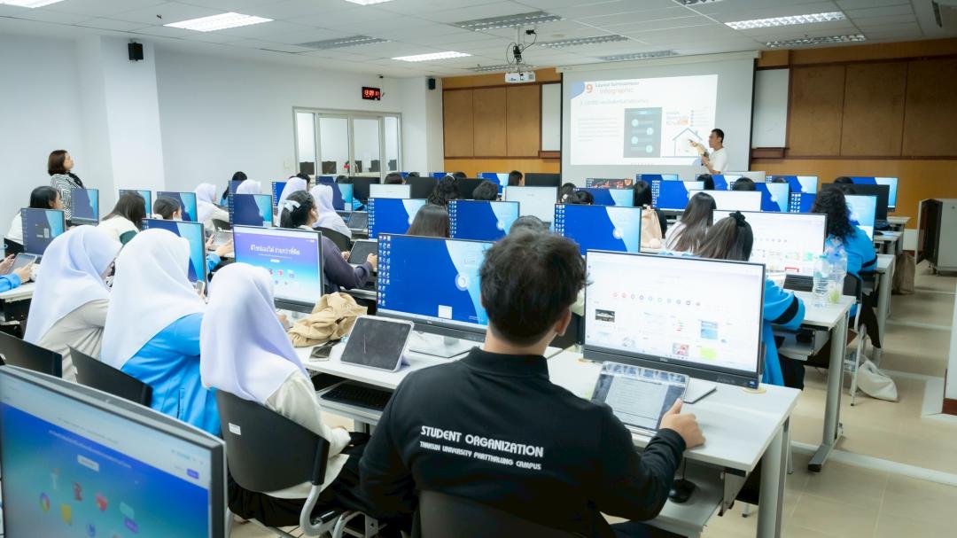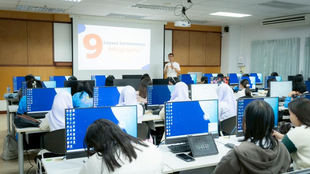 สถาบันทรัพยากรการเรียนรู้และเทคโนโลยีดิจิทัล มหาวิทยาลัยทักษิณ จัดโครงการอบรมเชิงปฏิบัติการ “การออกแบบ Infographics และ CANVA ในงานสาธารณสุข” ให้แก่นิสิตคณะวิทยาการสุขภาพและการกีฬา ในวันจันทร์ที่ 9 กุมภาพันธ์ 2569 เวลา 13.00–17.00 น. ณ ห้อง IT302 สถาบันทรัพยากรการเรียนรู้และเทคโนโลยีดิจิทัล มหาวิทยาลัยทักษิณ วิทยาเขตพัทลุง