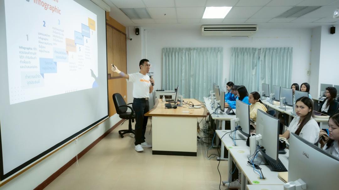 ภายในกิจกรรม นิสิตได้เรียนรู้หลักการออกแบบ Infographics ที่เหมาะสมกับบริบทงานสาธารณสุข ควบคู่กับการฝึกใช้งานโปรแกรม CANVA ซึ่งเป็นเครื่องมือออกแบบกราฟิกที่ใช้งานง่าย ช่วยให้นิสิตสามารถสร้างสรรค์สื่อได้อย่างมีประสิทธิภาพ แม้ไม่มีพื้นฐานด้านการออกแบบมาก่อน โดยมุ่งเน้นการนำไปประยุกต์ใช้จริงทั้งในการเรียน การฝึกประสบการณ์วิชาชีพ และการทำงานในอนาคต