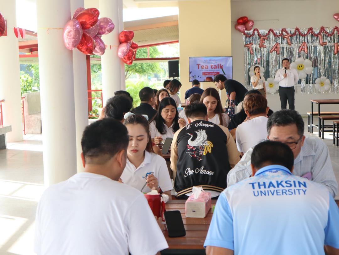 มหาวิทยาลัยทักษิณ วิทยาเขตพัทลุง จัดกิจกรรมTea Talk” เป็นประจำทุกสองเดือน เพื่อเปิดเวทีให้บุคลากรจากหน่วยงานต่าง ได้พบปะ พูดคุย แลกเปลี่ยนแนวคิด และเสริมสร้างความสัมพันธ์อันดีภายในองค์กร