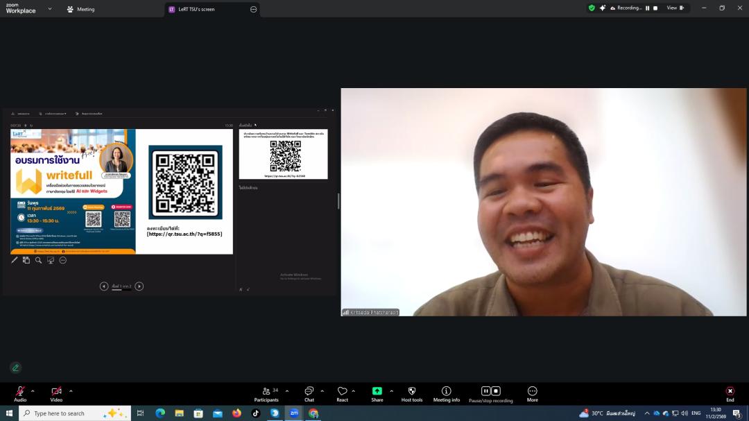 การอบรมกำหนดจัดขึ้นในวันพุธที่ 11 กุมภาพันธ์ 2569 เวลา 13.30 – 15.30 น. ผ่านระบบ Zoom Meeting โดยเปิดโอกาสให้ผู้เข้าร่วมเรียนรู้และฝึกปฏิบัติไปพร้อมกันในรูปแบบออนไลน์อย่างสะดวกและเข้าถึงได้ทุกพื้นที่
