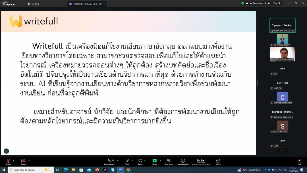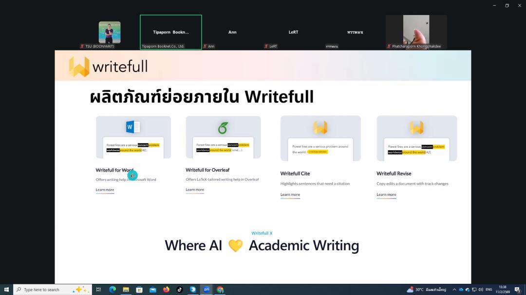 ยกระดับงานวิชาการด้วย AI LeRT จัดอบรมการใช้ Writefull