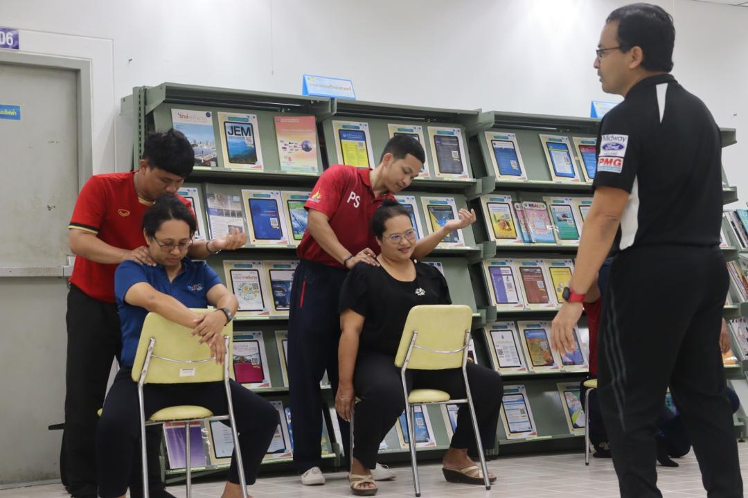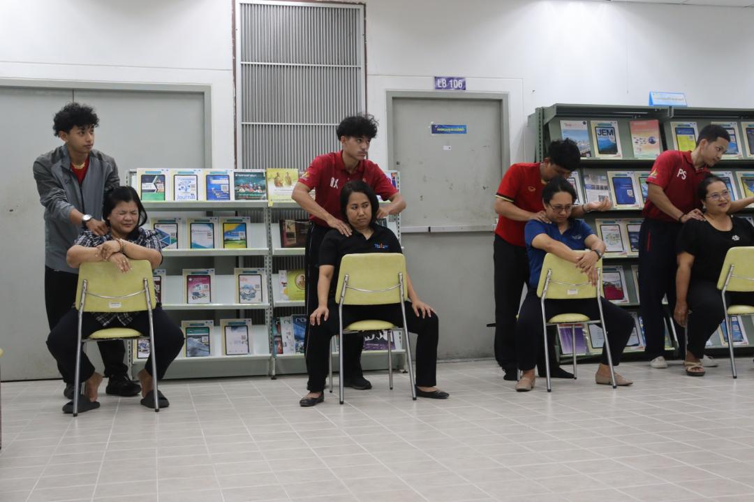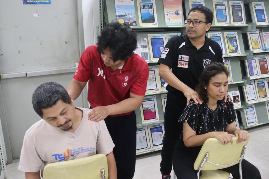 สถาบันทรัพยากรการเรียนรู้และเทคโนโลยีดิจิทัล มหาวิทยาลัยทักษิณ จัดกิจกรรม “Lert Happy Relax: นวดผ่อนคลาย” ณ ห้อง Co-Working Space ชั้น 1 (โซนห้องสมุด) วิทยาเขตพัทลุง โดยมีวัตถุประสงค์เพื่อส่งเสริมสุขภาพกายและสุขภาวะทางใจของบุคลากรในสถาบันฯ สร้างสมดุลระหว่างการทำงานและการดูแลตนเอง ภายใต้บรรยากาศที่อบอุ่นและเป็นกันเอง