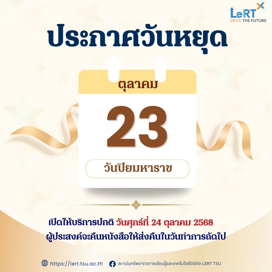 Update !! เวลาเปิดให้บริการห้องสมุด (ระหว่างวันที่ 20 ตุลาคม - 9 พฤศจิกายน 2568)