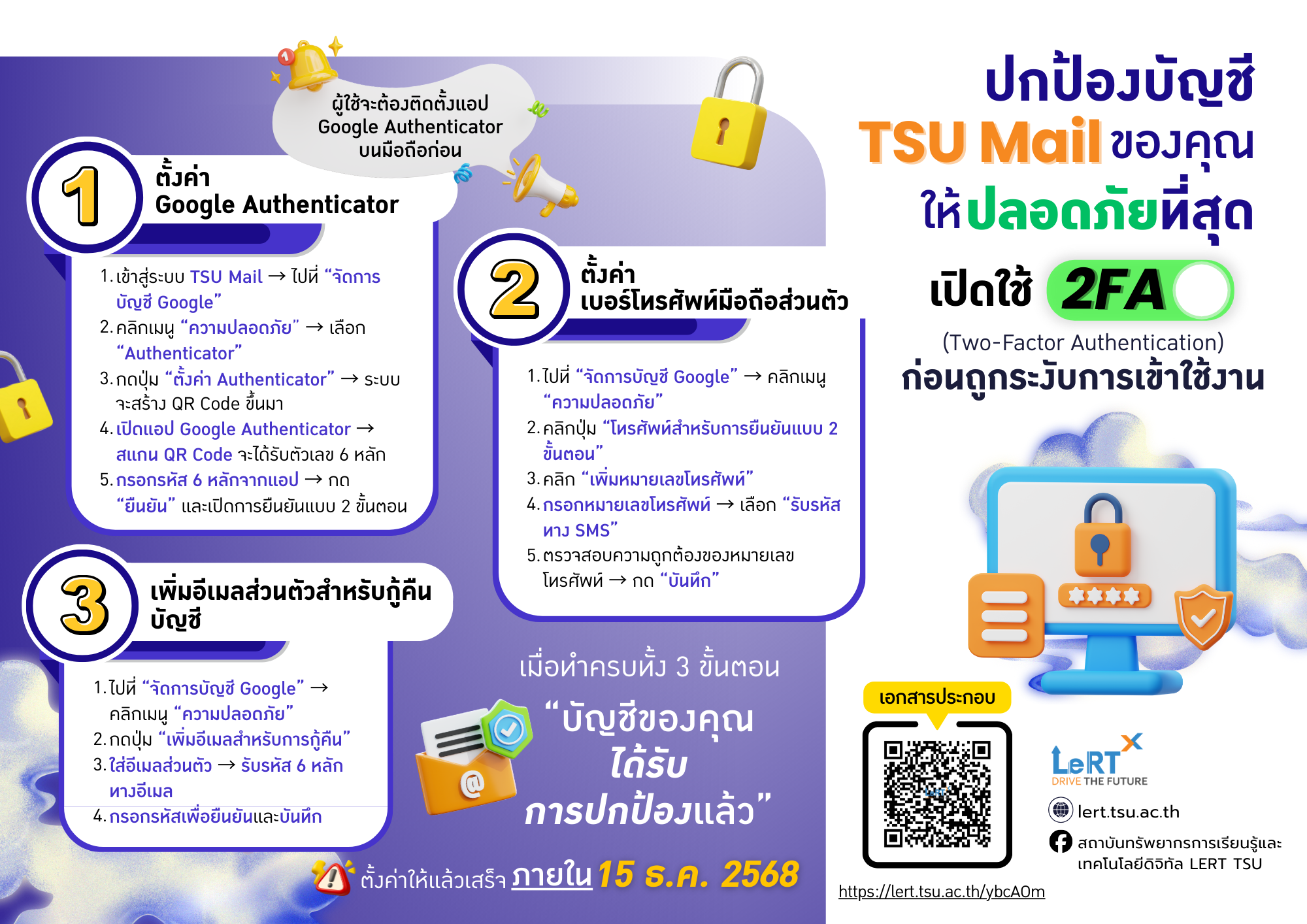 ปกป้องบัญชี TSU Mail ของคุณให้ปลอดภัยยิ่งกว่าเดิม!